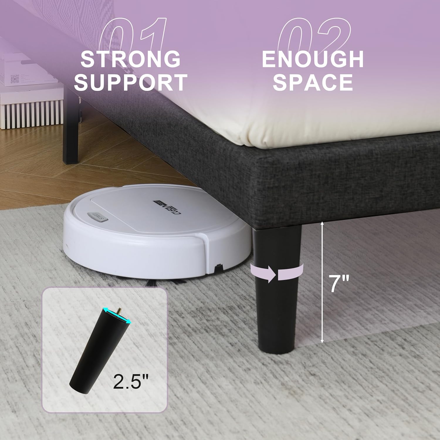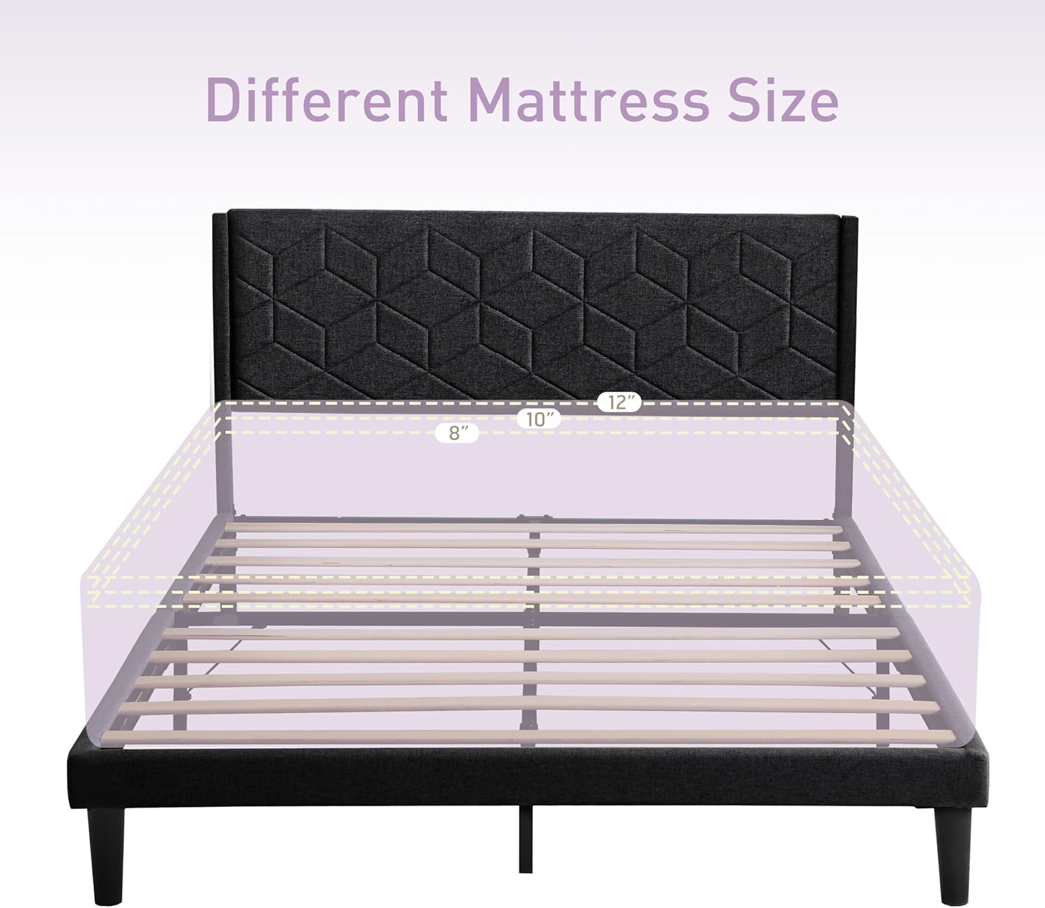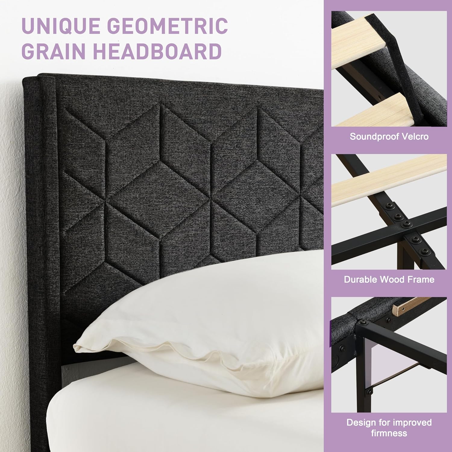 【Unique Upholstered Bed Frame】The bed’s headboard is made of high-quality linen fabric in appearance.Headboard pattern: Unique regular geometry, as if one square on top of another.The unique headboard finishes complement any style of room.